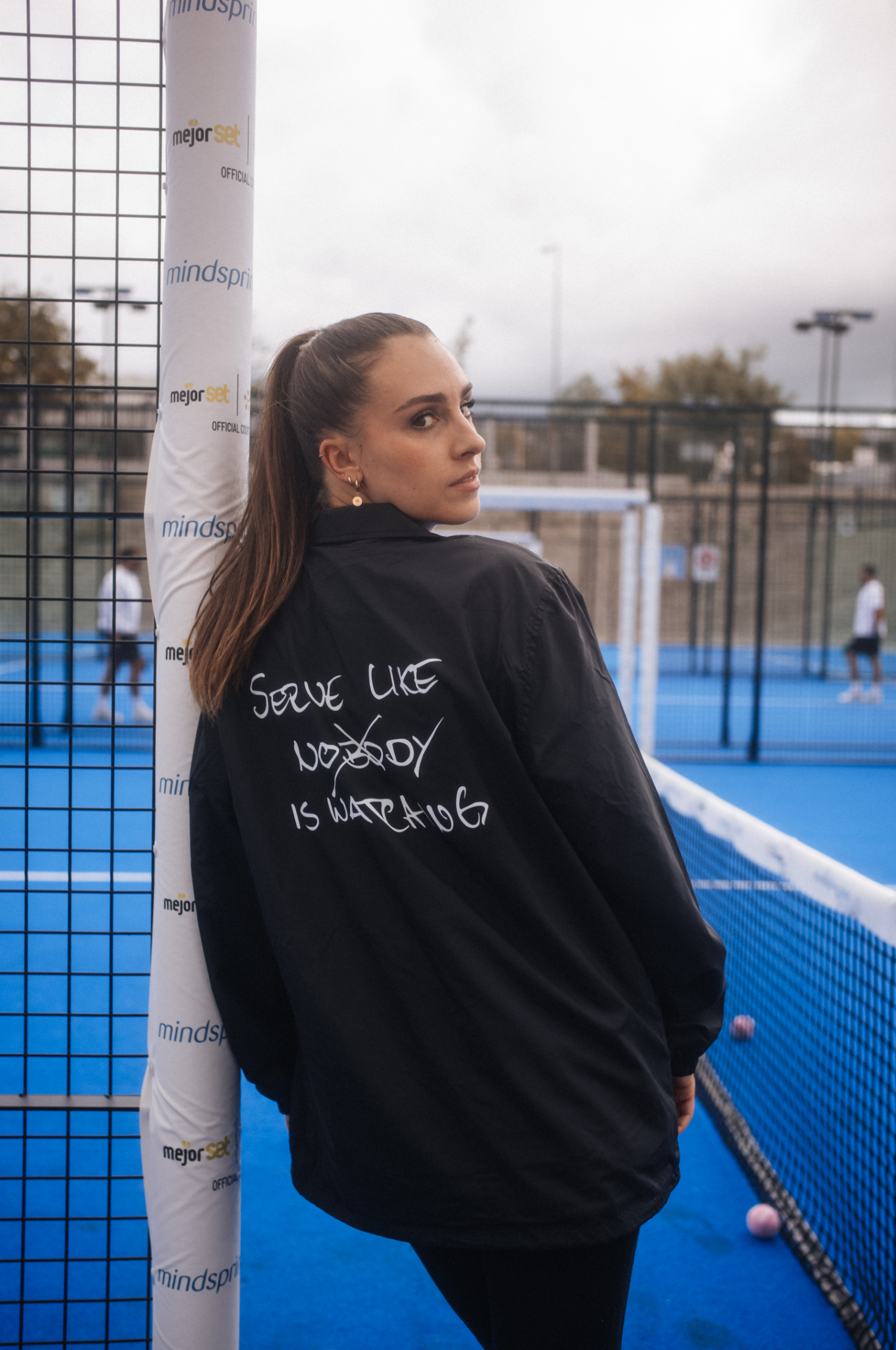 Der handschriftlich designte Backprint „Serve like nobody is watching“ zieht alle Blicke auf sich – frech, selbstbewusst und voller Attitüde. Auf der Brust sitzt dezent das CL-Logo, das für Qualität, Haltung und Stil steht.